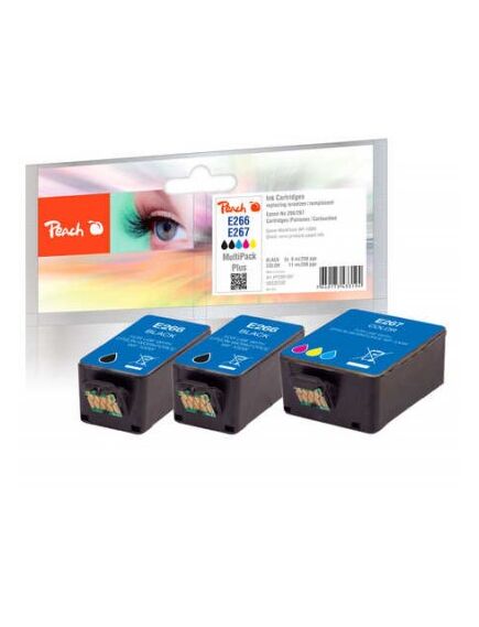 Peach PI200-587 δοχείο μελάνης Μαύρος (Μαύρο), Κυανός (Κυανό), Βαθυπόρφυρος, Κίτρινο Πολλαπλή συσκευασία 3 τεμάχια