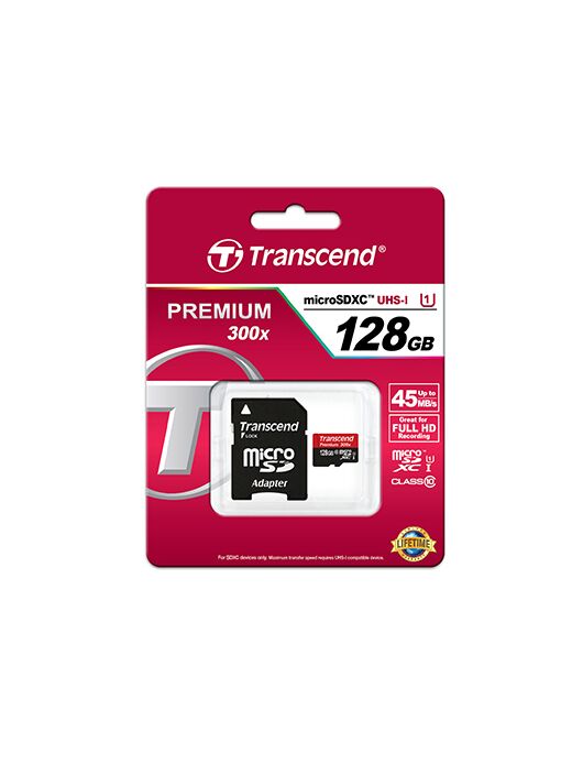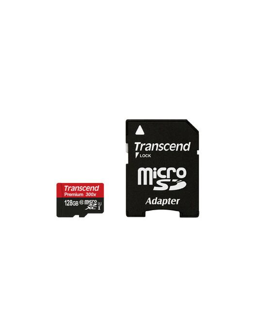 SD microSD Card 128GB Transcend SDXC UHS1 w/adapter