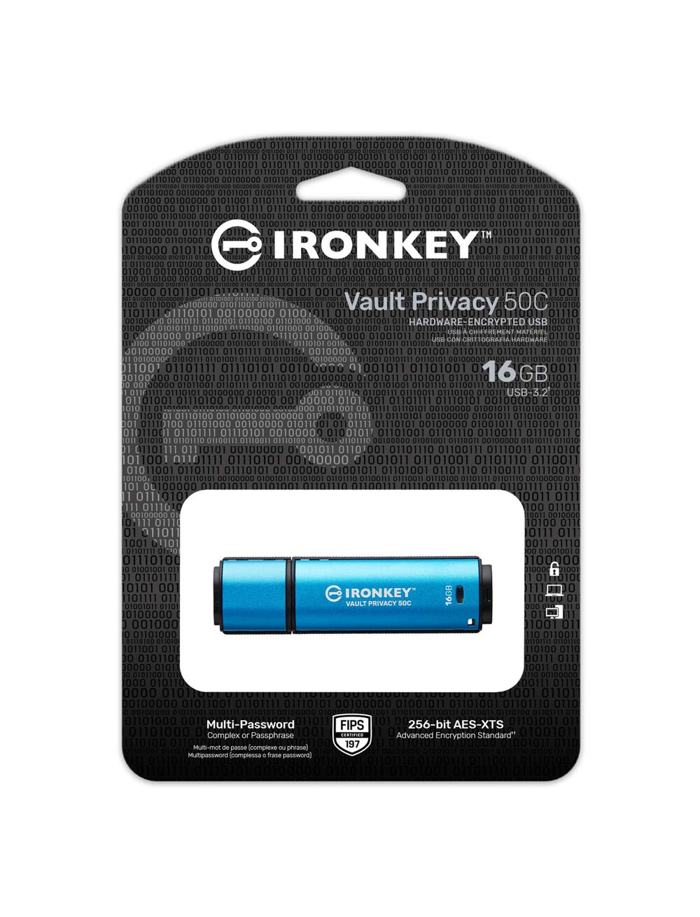 Kingston Technology IronKey VP50 μονάδα USB flash 16 GB USB Type-C 3.2 Gen 1 (3.1 Gen 1) Μαύρος (Μαύρο), Μπλε