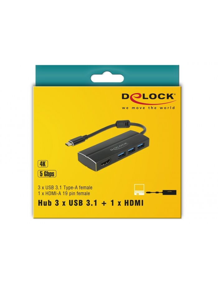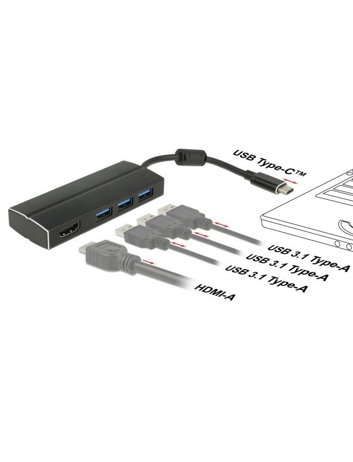 DELOCK Adapter USB3.1 Gen1/C > 3x USB3.0/A + HDMI 4K 30Hz