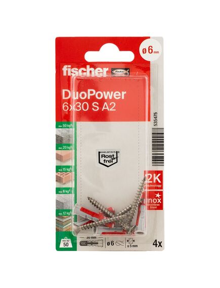 Fischer DuoPower 4 τεμάχια Σετ βιδών & βυσμάτων τοίχου 30 mm