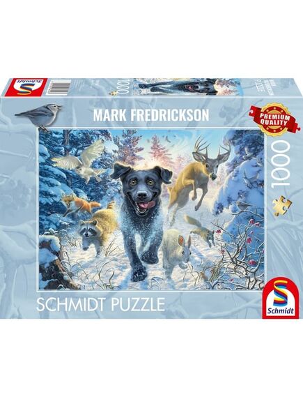 Schmidt Spiele Mark Fredrickson: Hundeliebe - schwarzer Labrador im Schnee, Puzzle