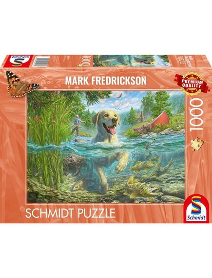 Schmidt Spiele Mark Fredrickson: Hundeliebe - gelber Labrador auf Fischjagd, Puzzle